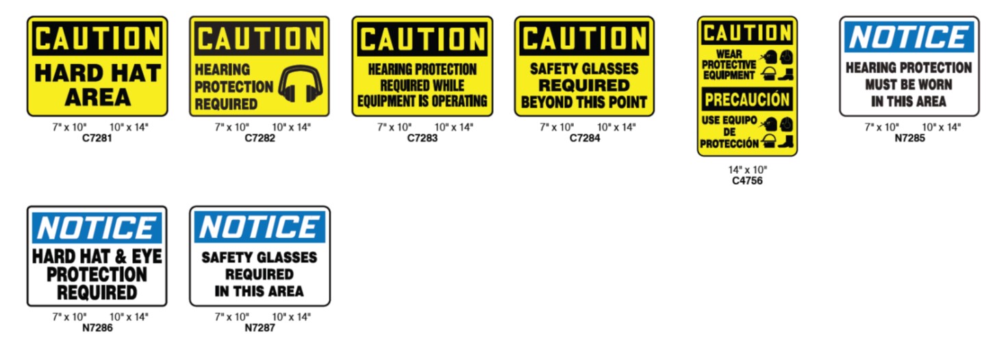 - Señales y etiquetas de seguridad ofrecidas en una variedad de materiales, colores, tamaños y leyendas